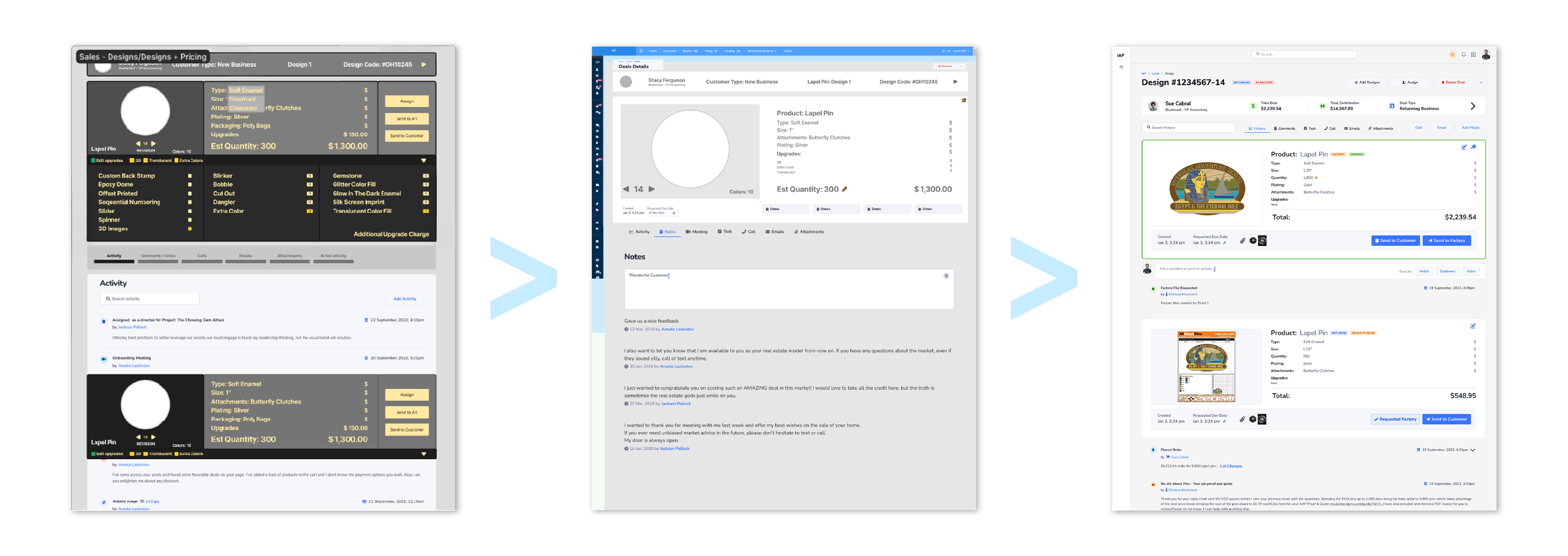 Artists are presented with less information to manage. Their roll predominantly has them working in Illustrator and Photoshop. Sales manage the ins and outs of the customer interactions. They are the heavier users of this internal program, so they have more tools at their disposal.